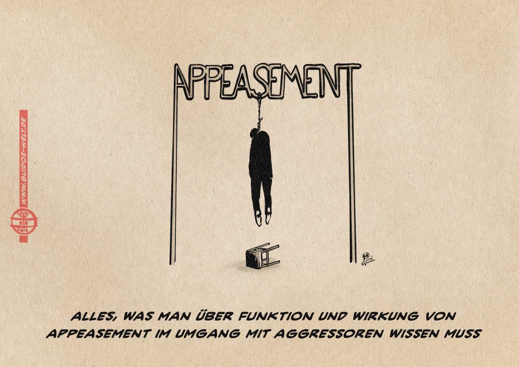 Da nicht wenige Akteure bei Bullys wie Trump und Putin in der Hoffnung, es gehe schon vorüber und erwische ja nur andere weiterhin auf Appeasement setzen: Die Geschichte lehrt eine Sache unmissverständlich: Appeasement ist die irrige Idee, Aggressoren wären durch Selbstaufgabe zu beschwichtigen.