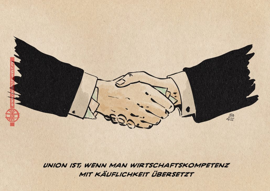 Frau Reiche lässt sich die Energiepolitik direkt von RWE schreiben, Herr Merz die Mobilitätspolitik direkt vom Verband der Deutschen Automobilindustrie. Die Union ist nicht wirtschaftskompetent, sie ist wahlweise arbeitsunwillig, hörig oder gegen Geld, Zugehörigkeit oder Jobs käuflich. Nicht umsonst ist sie nicht nur mit weitem Abstand führend bei der Verstrickung in Korruptionsskandale, die Verstrickung hat bei ihr Programm, gehört zu ihrer DNA. Keine andere Partei hat bis in den Vorstand so eine Verflechtung zu Lobbykreisen, wie die Unionsparteien CDU und CSU. All das geht zu Lasten des Wirtschaftsstandortes, des Bildes von Politik und ihren Akteur*innen, der Gesellschaft, der Infrastruktur und nicht zuletzt der Umwelt und des Klimas.