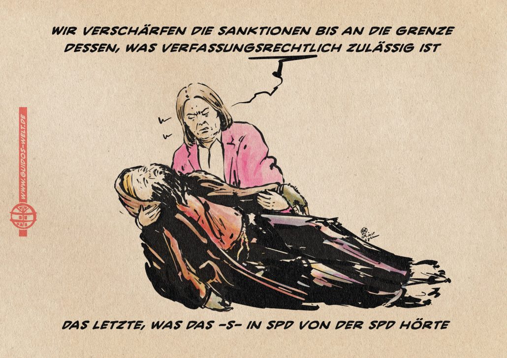„Wir verschärfen die Sanktionen bis an die Grenze dessen, was verfassungsrechtlich zulässig ist“ so die SPD Ministerin Bas, kaltschnäuzig wissend, dass natürlich nichts von ihrer Hatz auf Bedürftige mit der Verfassung vereinbar ist, aber bis zur Klärung viele schutzlos auf die Straße drängen und ein schlimmes System noch schlimmer machen wird. Einmal eine SPD, die bei der BeteiligungWohlhabender und obzön Reicher so engagiert ist, wie bei der Kriminalisierung, Verfolgung und Bestrafung Schutzbedürftiger.