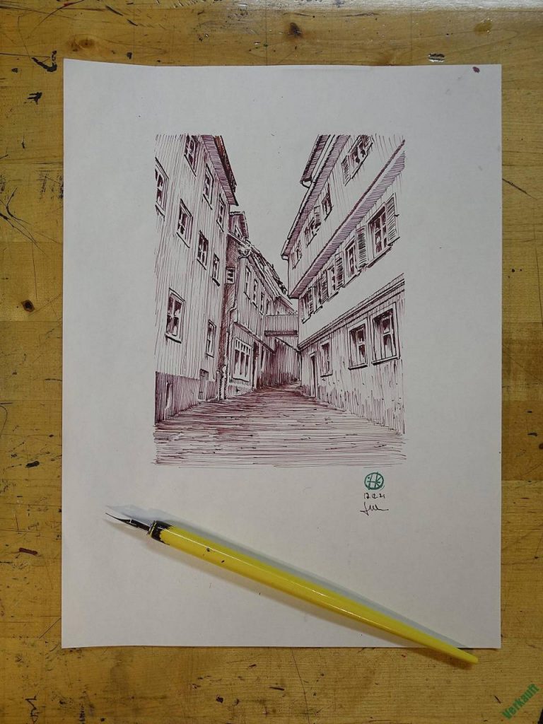 Die Färbergasse in Schwäbisch Hall ist wohl eine der wenigen Gassen durch die sich nicht dauernd Autos zwängen. Nicht, dass es nicht schon probiert wurde: am oberen Ende zu schmal, am unteren Ende eine steile Treppe die dennoch, glaubt man den alten Berichten, das Ende mancher Kleinwagen-Irrfahrt war. Das hörte erst auf als Botox im Autodesign kanisterweise unter die Bleche gespritzt wurde und selbst Kleinwagen auf groteske Dimensionen anschwollen. Heute passt nichtmal mehr ein Mini durch die enge Gasse.