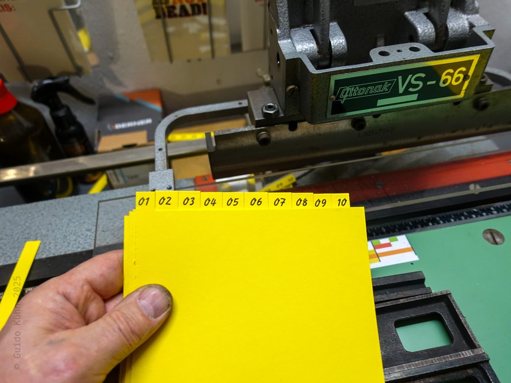 Seit die Registerstanze bei mir eingezogen ist, wollte ich mir bei Gelegenheit mal die Mühe machen, die Register aufzuhübschen. Gelegenheit war heute, denn heute war der Tag, an dem ich anfing meine grauenhafte Handschrift mit der Signal mager in 20p zu substituieren.