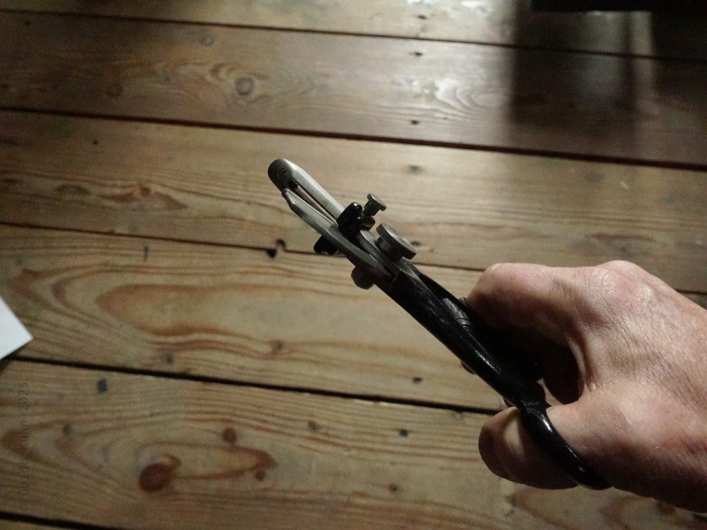 Heute im Maschinarium: die ca. 70 Jahre alte Registerschere der Solinger Traditionsfirma Hugo Köller. So eine umflatterte mein suchendes Herz seit langem. Entweder irrwitzig teuer, inkomplett oder beides ist sie vor allem eines: selten. Nun grüßte mich das Annoncenglück in Form originalverpackter Lagerware für 20 Euro. Darf ich nun also vorstellen? Registerschere, meine neue Freundin in der Setzergasse 🙂