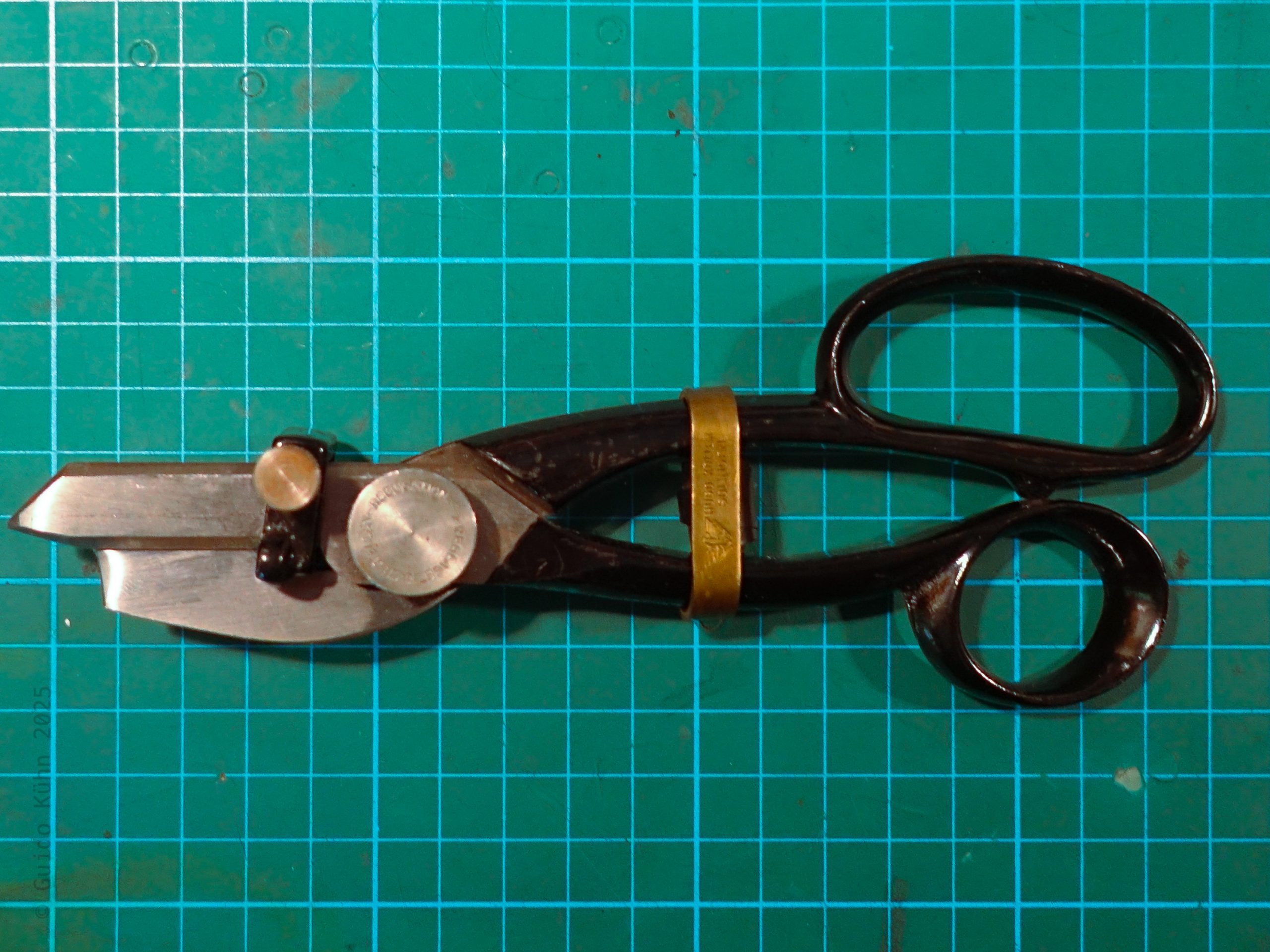 Heute im Maschinarium: die ca. 70 Jahre alte Registerschere der Solinger Traditionsfirma Hugo Köller. So eine umflatterte mein suchendes Herz seit langem. Entweder irrwitzig teuer, inkomplett oder beides ist sie vor allem eines: selten. Nun grüßte mich das Annoncenglück in Form originalverpackter Lagerware für 20 Euro. Darf ich nun also vorstellen? Registerschere, meine neue Freundin in der Setzergasse 🙂