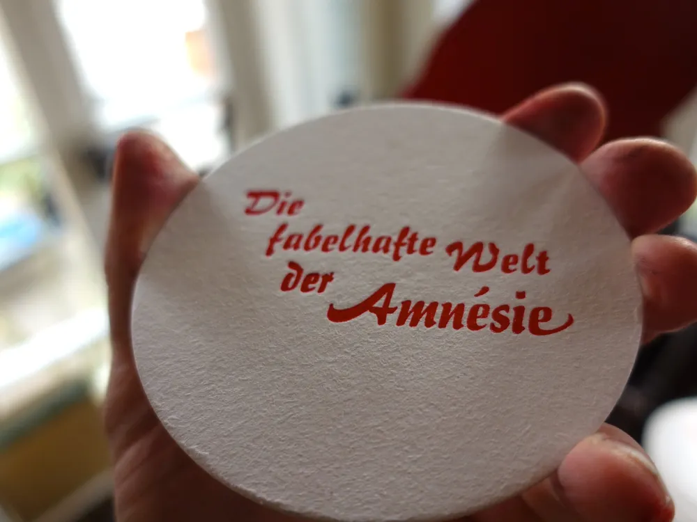 Skandal! Meine Wohnzimmerkneipe hatte mal wieder nur Blanko Filze – Ein völlig unhaltbarer Zustand, den zu beheben ich nach der Hochschulselbstverwaltungsdiaspora am Freitag flugs den vom Vortag noch daliegenden Satz in den stromlos fußbetriebenen, ca. 130 Jahre alten Eickhoff Trettiegel eingespannt und für den abend als Mitbringsel bommelig 200 Bierdeckel durchgelassen habe. Dabei habe ich etwas Gas gegeben, und so dauerte der tiefenentspannende After Work Cardio-Workout-Flow vom Einspannen bis zum Reinigen gerade mal 30 Minuten. Also mehr so eine Impuls-Trainingseinheit. Impuls heißt übrigens auch die Schrift von 1954.