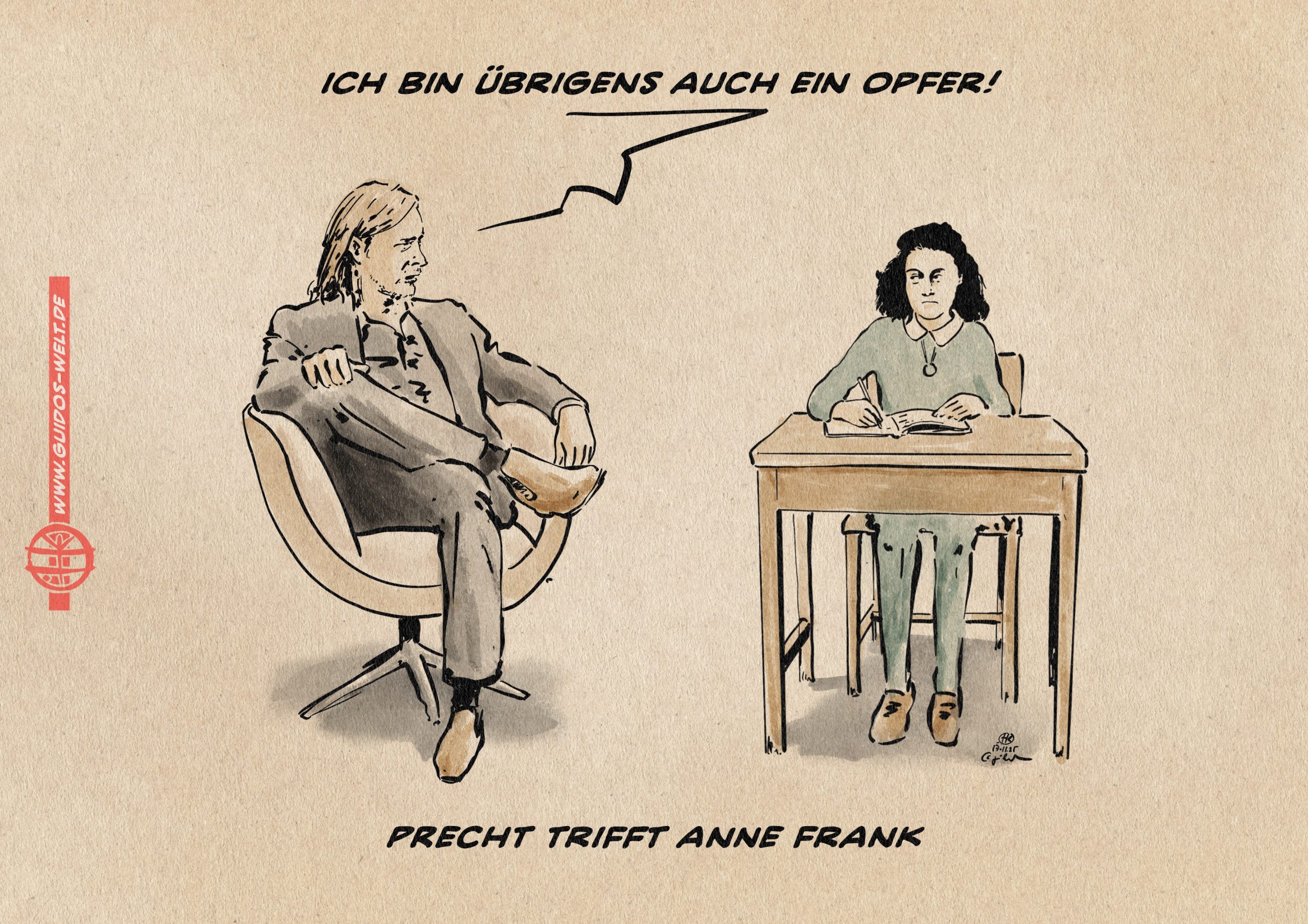 Precht stilisiert sich als Pogrom-Opfer. Es geht, wie schon 2020, als Nuhr die selbe Gleichsetzung verwendete, nicht darum, dass Precht oder Nuhr Opfer seien. Es geht um Erregungsmanagement im Ringen um Aufmerksamkeit, weil für Sie Aufmerksamkeit gleich Geld ist. Shoa-Verhöhnung als billige Selbstvermarktung professionell angefasster Befindlichkeit fragiler Alpha-Männlichkeit.