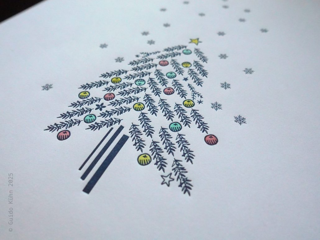 Weihnachten steht vor der Tür und in einem akuten Anfall von Romantik habe ich mit der fixen Idee einen Tannenbaum aus 90° Winkeln zu setzen die Steckladen mit dem Blei-Schmuck aufgerissen. Nun, es hat seine Berechtigung: Wir haben mit Auszug der Kinder Weihnachten auf eine beschauliche Zweisamkeit fernab aller Konsum- und Weihnachtshektik eingedampft, was ich im übrigen durchaus zur nachhaltigen Schonung von Nerven und Beziehungen empfehlen kann. Ein Teil der Kinder jedoch „besteht“ auf einen Baum, wenn sie denn vorbei kommen. Nun, diktatfest wie ich bin, werde ich auch für meine Kinder ganz sicher keinen Baum abholzen, aber etwas Entgegenkommen darf schon sein. Wie auch immer, nun hängt also ein geschmückter Baum frisch gerahmt im edlen Passepartout im Wohnzimmer. Die Kinder können kommen.